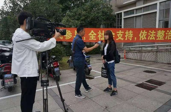 我校国际法学院一名大一学生在接受青浦区电视台的采访中表示,“爱生活,爱上海,珍爱自我,拒绝黑车”,此次宣传活动非常及时,在大学一开始就能及时了解“黑车”危害,提高了安全意识和自我保护能力,提醒师生应关注出行安全,自觉抵制“黑车”,文明出行。(张静撰稿 谢颖杰摄影)
