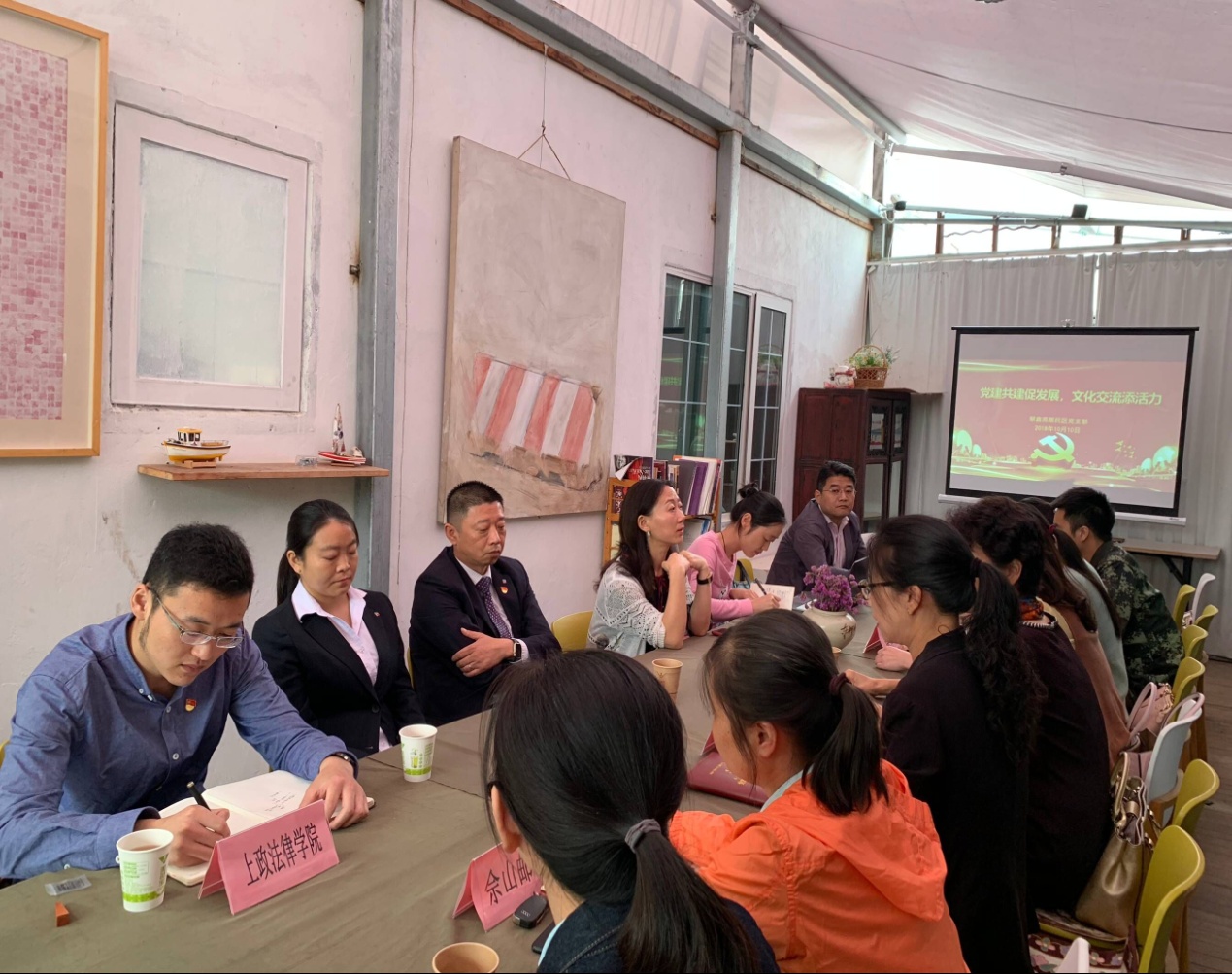 10月10日下午,法律学院与翠鑫苑居民区党支部共建单位“党建共建促发展,文化交流添活力”共建单位交流会在天马山九曲创意工坊社会学习点召开。法律学院、文学与传媒学院、佘山消防中队、安与峰、大众国际会议中心等十二家共建单位参加。学院组织员王成汉参会。