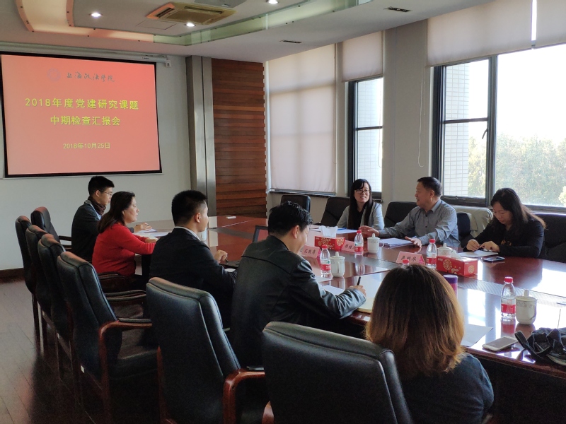 会上,来自马克思主义学院、上海纪录片学院、经济法学院、文学与传媒学院、机关一的徐俊峰、邢虹文、黄益辉、朱凯和胡爱军老师分别就2018年度党建研究课题进展情况作详细介绍,五位课题负责人从课题的研究背景、研究目的、研究方法、重点难点及下一步研究计划等方面依次对课题进行阐述,并与专家进行探讨。