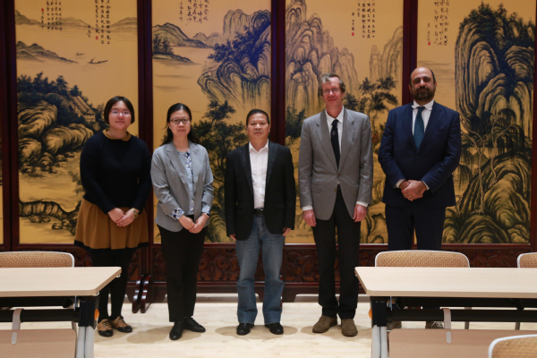 10月27日上午,意大利布雷西亚大学法学院院长Antonio Saccoccio,国际事务代表Roberto Ranzi访问我校。国际交流处处长欧阳美和会见了来宾,国际交流处副处长张正怡、国际交流处师生交流主管李怡洁陪同会见。