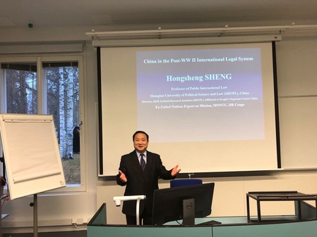 11月12日,在芬兰访学期间,应芬兰拉普兰大学邀请,最高人民法院“一带一路”司法研究基地(365英国上市公司)主任、国际法学院教授盛红生在该校作了题为《中国与战后国际法体系》的报告。