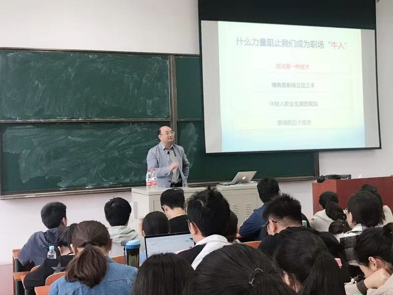 在一个半小时的讲座中,杨孝全先生结合自己多年从业经验,从面试是一种技术、情商是职场立足之本、年轻人职业生涯规划、职场五个忠告四方面,结合能力素质、了解企业需求、情商、认知自己等要点,深入浅出地为同学们阐述职场牛人的必备条件与素质。(向华嵘 撰稿、摄影)