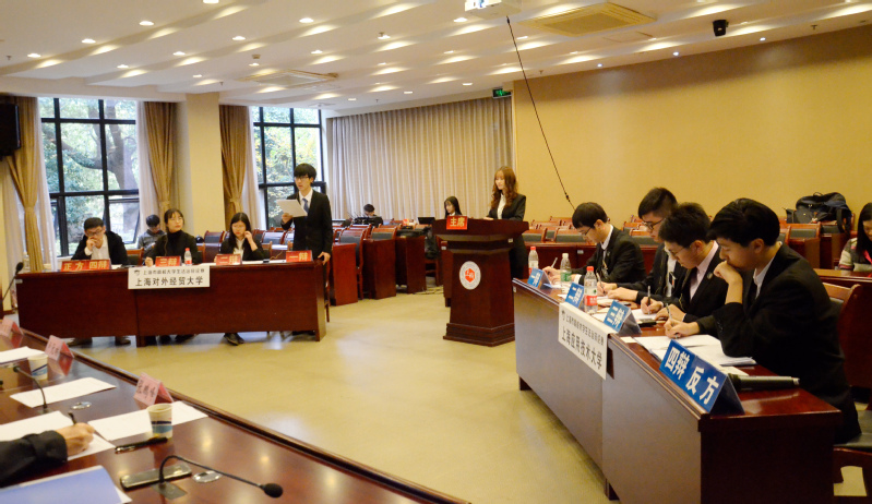 随后,复赛第二轮紧接开战,上海市中级人民法院研究室主任、上海市优秀中青年法学家刘言浩、上海市金山区检察院副检察长徐庆天、上海市教卫工作党委法宣办常务副主任卢天琳、上海中夏律师事务所主任张鹏峰、我校经济法学院副教授丁茂中作为评委。