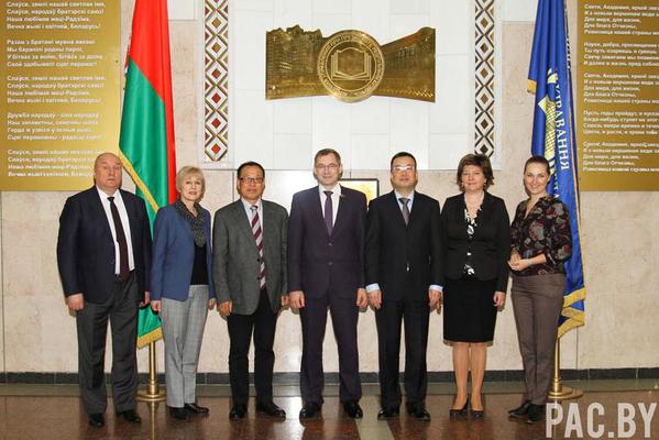 11月12日,代表团抵达明斯克,访问了白罗斯总统直属公共管理学院,与校董会会谈。第一副校长瓦莱里·波罗杰尼亚(Valery Baradzenia)博士致辞,向代表团表达了热情欢迎。科研副校长纳塔利娅·邦达连科(Natalia Bondarenko),国家管理理论与实践研究学院院长伊莲娜·西多尔丘克,国际合作和教育项目中心主任塔季扬娜·普拉尼克(Tatsiana Prannik)博士,哲学与思想理论教研室主任、国家公务员研究所所长维克多·丘耶绍夫参加了会谈。