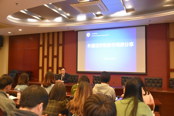 11月20日下午,外国语学院在综合研究中心107报告厅举办了教学观摩公开课。全体教师和部分学生参加了此次教学观摩活动,活动由院长张本梓和分工会主席洪令凯主持。