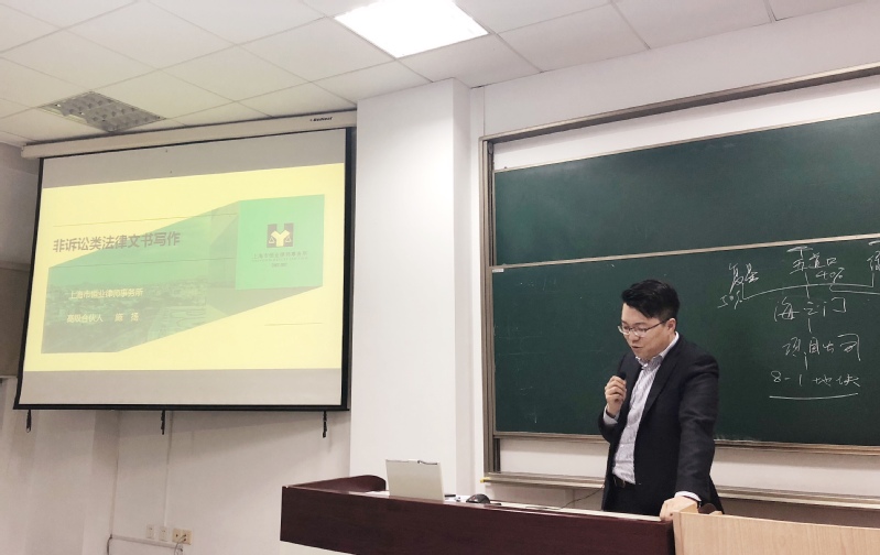 魏雄从诉讼类法律文书写作入手,向学生们介绍了民事起诉状、管辖权异议申请书、财产保全申请书、执行申请书、采取限制措施申请书以及聘请律师合同等文书的写作规范,以具体案例的形式向学生们介绍各类文书的写作技巧与注意事项。施扬就非诉讼类法律文书写作给大家做了十分系统的讲解。通过理论与具体案例结合的方式,让学生们进一步了解在法律实务中特别是非诉实践中需要注意的问题以及解决类似问题的方法。
