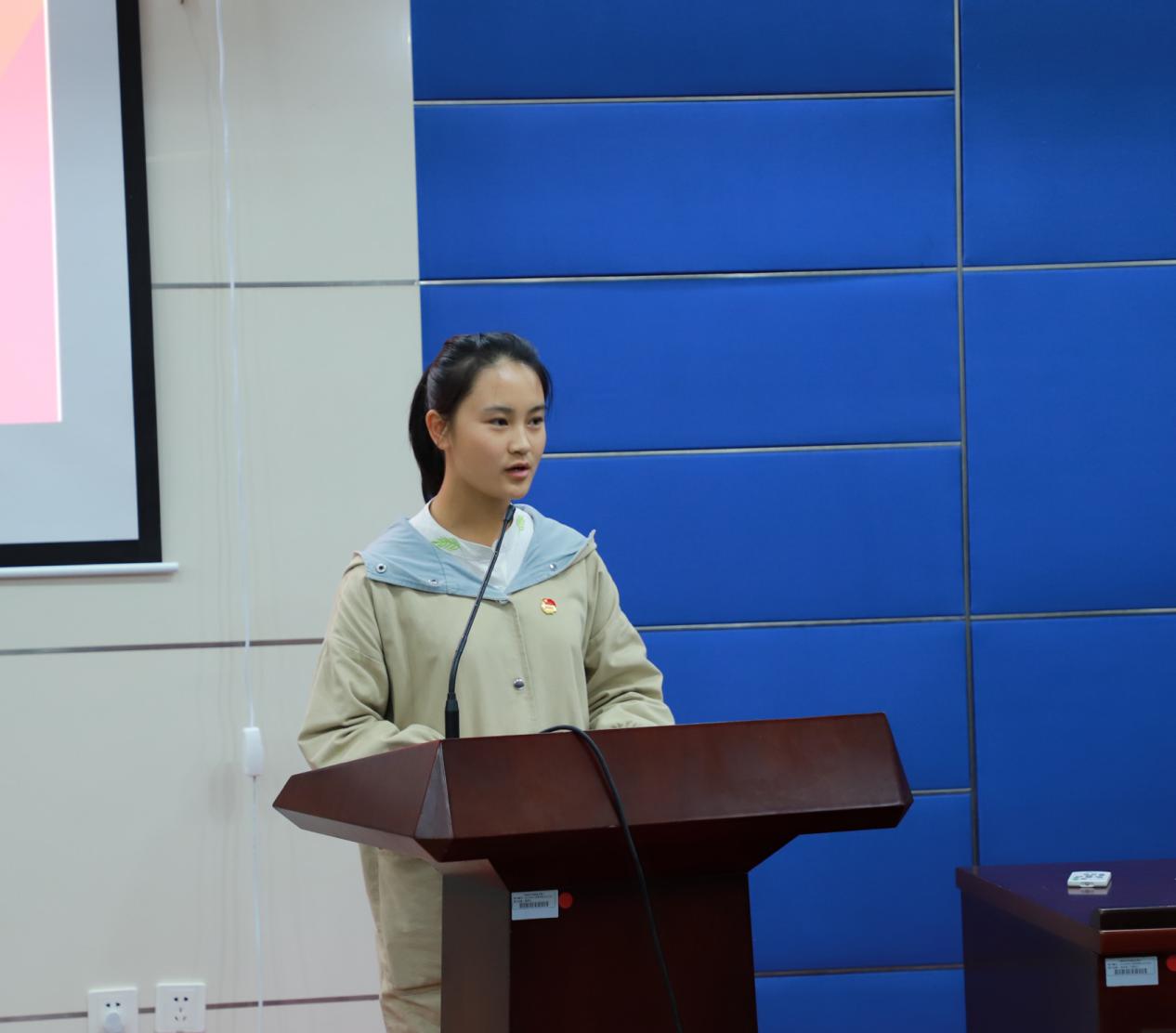 马克思主义学院刘佳玉同学作为优秀学员代表上台发言,细数了每节课程带给她的收获和感动,并鼓舞在场的基层班团骨干们继续一同学习、一同成长,努力争做一名新时代下优秀的基层班团骨干,尽心尽力带动基层团务工作的开展。