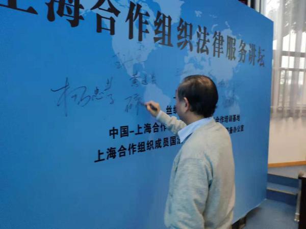 12月11日下午,首都师范大学教授石新中为上海合作组织法律服务讲坛就“中国社会信用体系建设与‘一带一路’倡议”专题进行了讲座,并与我校丝绸之路律师学院师生进行了交流。上海合作组织国际司法交流培训基地合作部副主任、上海合作组织法律服务委员会中方筹备办公室执行秘书长姜思源主持讲座,经济法学院副教授孙放参与了研讨。