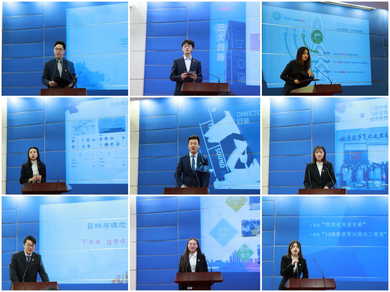本次共有各学院11个团支部参加答辩。经前期基础工作测评和团员民主评议,参与评选的团支部代表依次上台进行活力特色展示,分别从思想引领成效、组织制度建设、团员参与活力、所获成果及未来构想等方面展开陈述,通过PPT、微视频、H5页面等多类型方式,全面系统地展现了各支部自团支部活力提升工程开展以来所取得的丰硕成果,充分展示了各支部不同的活力特色与青春风采。