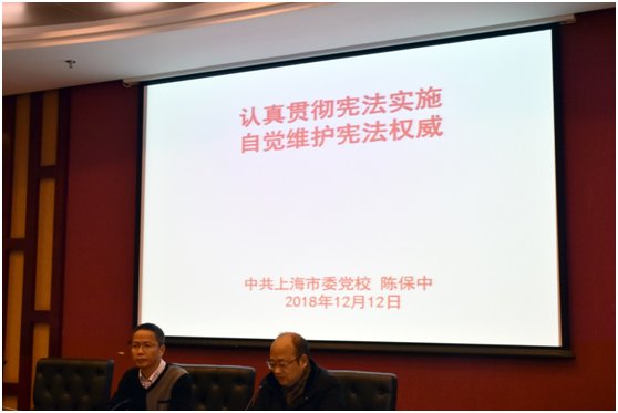 12月4日是第五个国家宪法日。今年国家宪法日集中宣传活动从11月下旬至12月下旬,其中,12月2日至8日是第一个“宪法宣传周”。为深入学习贯彻《中华人民共和国宪法》,深刻领会和准确把握核心要义和精神实质,12月12日下午,学生工作部在综合研究中心107会议室举办 “青马·博雅讲堂”第五讲,邀请上海市委党校政府治理研究院副院长陈保中教授围绕《认真贯彻宪法实施,自觉维护宪法权威》作专题讲座,各学院百余名学生聆听了讲座。