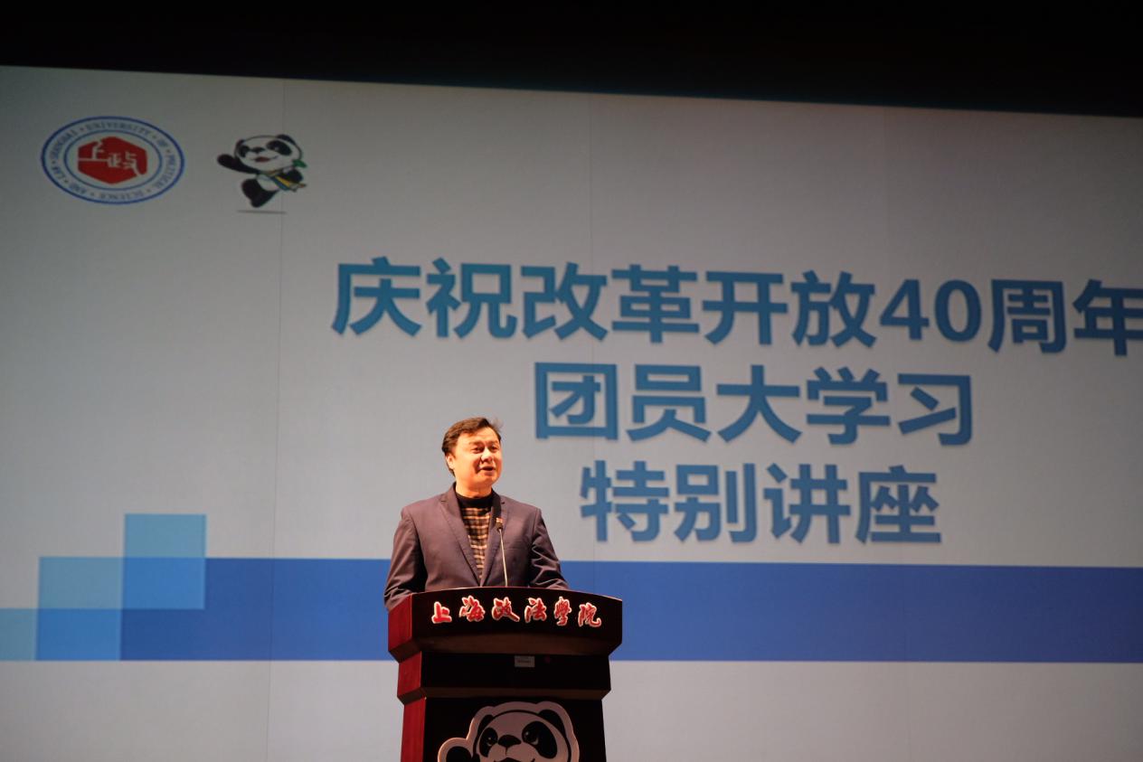 刘刚为与会志愿者、学生骨干作庆祝改革开放40周年团员大学习特别讲座。他结合习近平总书记在庆祝改革开放40周年大会上重要讲话精神以及在首届中国国际进口博览会开幕式上的主旨演讲和考察上海时的重要讲话精神,详细阐述了改革开放对于中国崛起、上海发展、青年成长的重要意义。他以自身成长经历为例,生动指出一代人有一代人的使命担当,勉励全校学子牢记总书记对青年的殷殷教诲,发扬进博会“小叶子”志愿服务精神,在日常学习生活中从小落实、从细做起,始终心怀远大理想、锤炼过硬本领、满怀饱满激情,以青春之我、奋斗之我投身于新时代改革开放的宏伟征程,为实现“两个一百年”奋斗目标与上海建设卓越的全球城市与社会主义现代化国际大都市贡献青春力量。