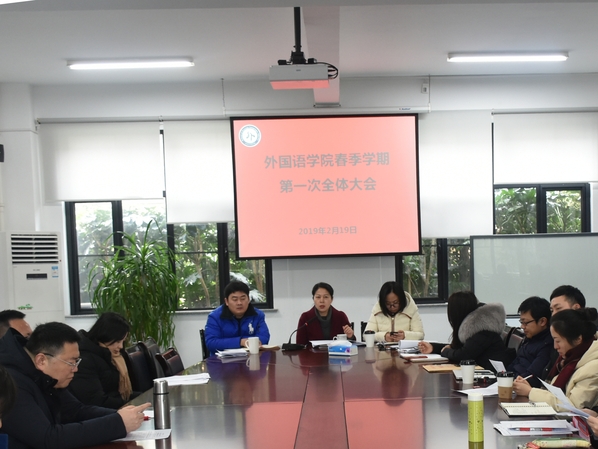 2月19日,外国语学院在A1-101会议室召开春季学期第一次全体教职工大会。学院全体教职工参加了会议,会议由党总支书记姚善英主持。