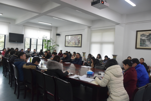 姚善英传达了学校党政领导班子务虚会会议精神,重点介绍了学校推进两级管理体制的相关情况以及学校促进人才发展的工作重点。她指出,新时代对学校的人才队伍建设提出了新的更高的要求,这是挑战,同时更是机遇,希望外院教师抓住机遇,增强主动性和积极性,新的一年在师德修养、业务素质、工作能力上得到加强,教书育人水平有新的提高。