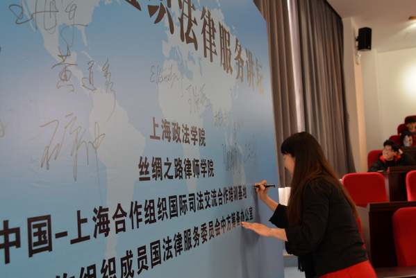 2月26日下午,华东政法大学国际法学院彭溆副教授应邀为上海合作组织法律服务讲坛就国际经济法、国际投资法、海外投资法的相关内容举办专题讲座,并与我校丝绸之路律师学院师生进行了交流。中国-上合基地合作部主任、上合组织法律服务委员会中方筹备办执行秘书长姜思源主持讲座。