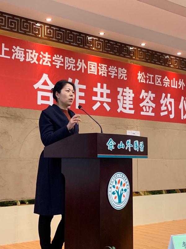 李燕华详细介绍了佘山外国语实验学校的办学理念、办学特色、育人目标、校训、教风、学风等,提出“共设一套机制、共培一支队伍、共建一个基地”,定期“共搞一次活动、共做一项科研”的合作共建设想。同时她表示将以此次合作共建为契机,依托上政外院的优势,以外语学科重点建设为抓手,积极践行教育综合改革,关注学生全面发展,并注重培养学生个性特色,办好家门口的好学校。