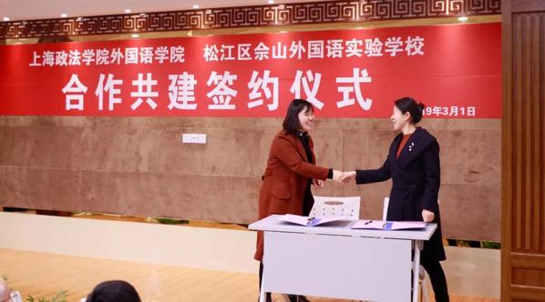本着“优势互补、资源共享、互利双赢、共同发展”的原则,3月1日,我校外国语学院与佘山外国语实验学校举行合作共建签约仪式。松江区教育局基教科科长郭宁伟、佘山镇教委主任张仲芳、佘山外国语实验学校校长李燕华,外国语学院党总支书记姚善英、党总支副书记孙留华、副院长夏甘霖、大学外语党支部书记缪学、教研室主任王春荣出席了签约仪式;佘山外国语实验学校全体教师、学生代表、家长代表及我院部分实习生代表参加了此次活动。