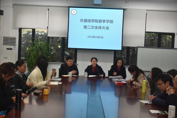3月5日上午,外国语学院在A1-101会议室召开春季学期第二次全体教职工大会,传达学习学校重点工作部署会和巡视整改工作动员部署会会议精神,并对近期工作进行通报安排。会议由党总支书记姚善英主持,学院全体教职工参加了会议。