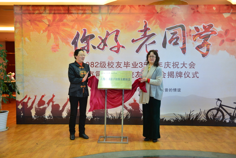 活动中,浜大校友会为师兄师姐深情朗诵了《走在回家的路——致1982级校友们的一封信》,引起现场的强烈情感共鸣;82级校友代表、市人民检察院办公室副调研员丁雁与合作发展处处长王晓宇在《20年后再相会》的悠扬旋律中共同为上政市司法学校校友联谊会揭牌。在自由发言环节,每位校友依次介绍了自己离开母校后的主要经历,感恩母校的教育与培养。大家纷纷表示,尽管离开母校已整整35年了,但正所谓“从来不曾想起,永远不会忘记”,母校情结、母校恩情将永远埋藏在心中最柔软的位置。