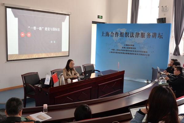 3月15日下午,上海对外经贸大学法学院副教授殷敏为上海合作组织法律服务讲坛就“‘一带一路’与中国国际法”专题进行了讲座。中国-上合基地办合作部主任、上合组织法律服务委员会中方筹备办执行秘书长姜思源主持讲座。