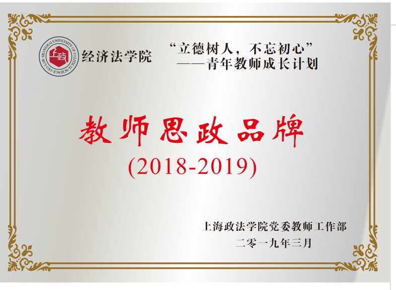 胡继灵为经济法学院“教师思政品牌”——“立德树人、不忘初心——青年教师成长计划”授牌。