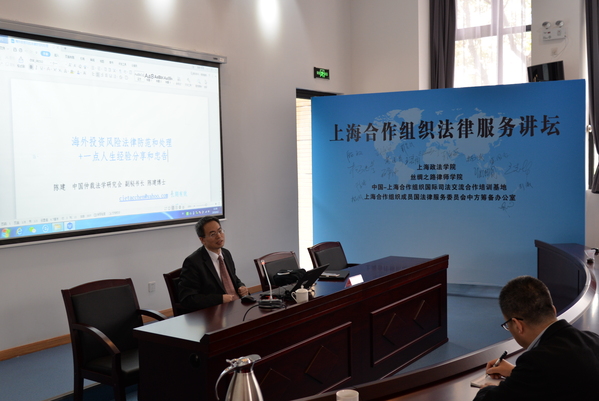 4月2日下午,中国仲裁法学会副秘书长陈建为上海合作组织法律服务讲坛就“海外投资风险法律防范和处理”专题进行了讲座,并与我校丝绸之路律师学院师生进行了交流。中国-上合基地办合作部主任、上合组织法律服务委员会中方筹备办执行秘书长姜思源主持讲座。