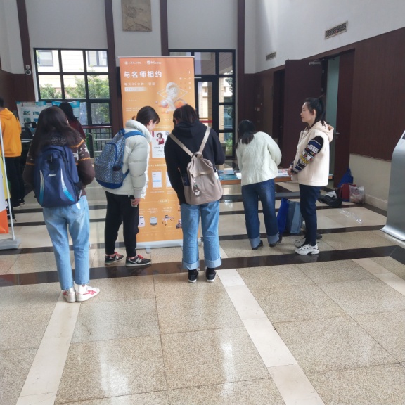 活动现场,工作人员事先准备好了桌椅、活动易拉宝,并摆放好了宣传资料和给学生赠送的小礼品。一大早就有学生和老师陆陆续续地过来,活动人员向师生们介绍打卡活动的参与方式及相关使用方法,并引导大家进行实际操作。师生们对各位大咖的讲座表现出了极大兴趣,并进一步询问了相关的问题。截至下午两点活动结束,现场报名活动的人数超过百人,还有不少同学后期通过扫码参加活动。
