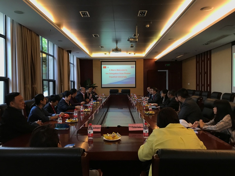 普吉皇家大学校长Hiran Prasarnkarn表示感谢,并介绍了普吉皇家大学的学校规模、学科设置、学生培养方案等情况,就两校开展学生交流、学术研讨进行了详细的阐述,并就落实两校合作项目提出了一些积极的建议。