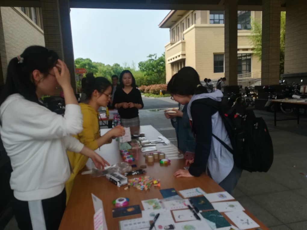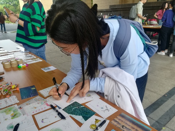 下午一点,活动正式开始。来来往往的同学停下来看海报和活动倡议书,根据自己兴趣,参加各类活动。