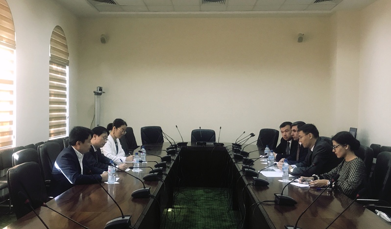 (图:代表团同乌司法部副部长、塔什干国立法律大学校长堪亚佐夫会见)