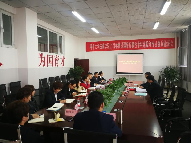 在法学专业建设和学科发展专题论证会上,姚建龙详细了解了喀大法学专业人才培养方案、课程设置、师资结构、师生比、实践课开设、生源情况及毕业生去向等具体问题。听取法学专业教师的意见和咨询后,姚建龙给出了详细的指导意见:一是在师资建设上采用“引进来、走出去”模式,人才引进方式应更加灵活化,鼓励喀大教师积极参加国内教学、科研培训并到实务部门挂职锻炼;二是结合校情定位喀大自己的法学人才培养特色,完善学科发展方向与学科带头人制度,建立校级党内法规研究中心;三是对接法律职业资格考试,在法学核心课程上与上海柔性援疆高校实施统一教学标准,充分利用好援疆教育资源,引入援疆教育单位的“金课”,与援疆单位教师“同上一门课”;四是要更加重视学院网站建设,把学院网站打造为专业特色的展示窗口、与国内院校交流的平台。