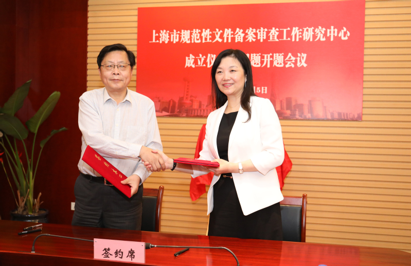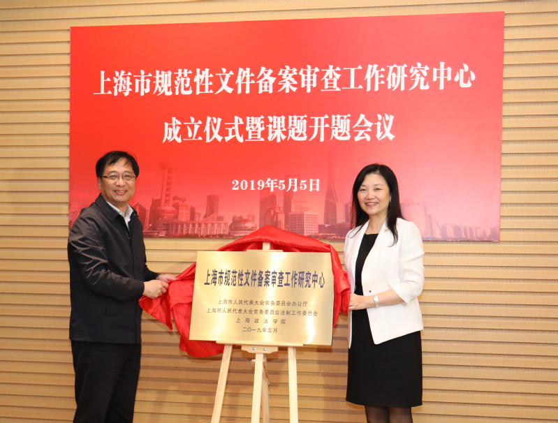 莫负春与刘晓红共同为“上海市规范性文件备案审查工作研究中心”揭牌。