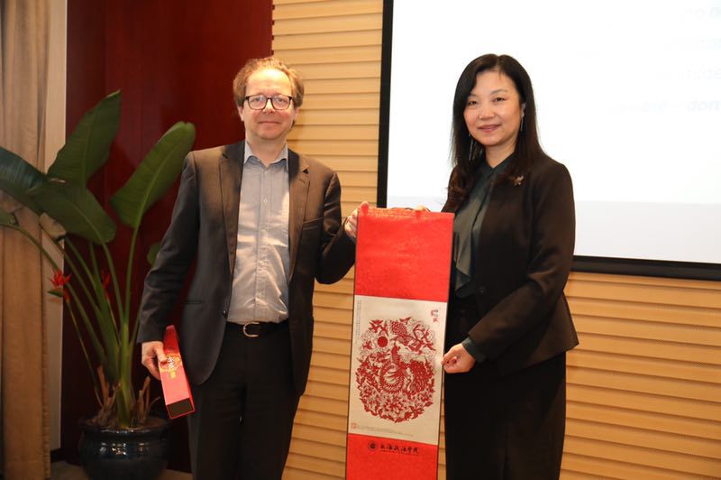 刘晓红对根特大学代表团来访表示欢迎,并介绍了我校基本情况,包括建校历史、学科设置、课程体系等。双方共同观看了我校纪录片。欧阳美和补充介绍了我校教育国际化的发展现状。Michel Tison对我校的热情接待表示感谢,并介绍了根特大学概况。根特大学历史悠久,具有雄厚的师资资源和多个本硕博学位点,与多所世界知名院校保持合作关系。Peter Van Elsuwege和Hans De Wulf分别介绍了根特大学的国际交流情况和LL.M项目情况,着重介绍了该校在中国的交流平台,并表示非常欢迎中国学生赴根特大学进行交流学习。双方均表示将保持沟通,拓展两校国际化合作项目。双方还互赠了纪念品。