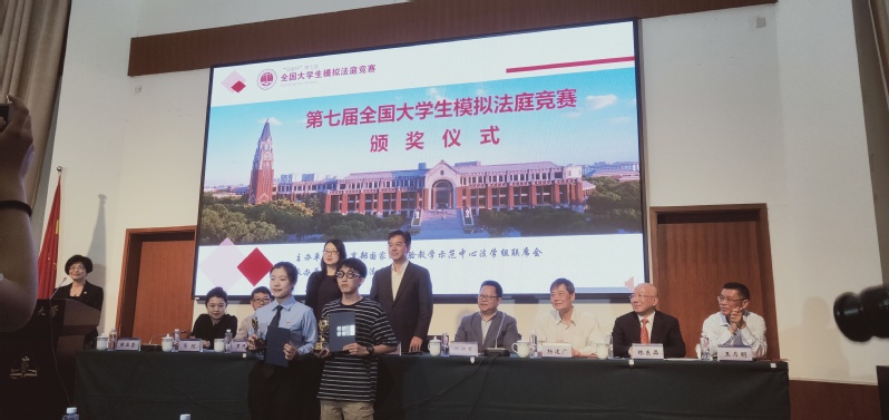 比赛结束当晚,在华东政法大学明镜楼会议室进行了颁奖仪式,华东政法大学党委书记郭为禄和市教委、市高院、市检察院、市律协的领导出席颁奖典礼,华东政法大学副校长陈晶莹主持颁奖典礼。最终,我校与中国政法大学获得本次赛事的一等奖,华东政法大学、四川大学、上海海事大学、中山大学获得二等奖。值得一提的是,我校是整个赛事唯一一个全程3:0获胜的赛队。刑事司法学院的陈丹彤被授予全国赛最佳辩手称号。我校教练团队亦获得最佳指导教练荣誉。