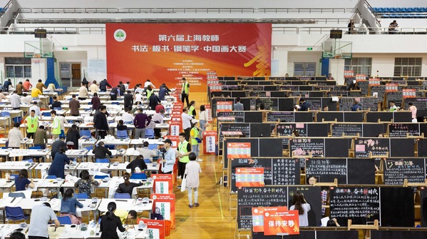 5月11日上午,由上海市教育工会主办,上海第二工业大学工会、上海教工书画协会承办,上海市大学书法教育协会、上海中华书画协会、上海市崇明书法家协会协办的第六届上海教师书法·板书·钢笔字·中国画大赛在上海第二工业大学举行。市教卫党委副巡视员、市教育工会常务副主席李蔚,市教委原主任张伟江,上海市书法家协会主席丁申阳,上海市书法家协会原名誉主席周志高,上海慈善教育培训中心主任徐佩莉,上海市大学书法教育协会会长瞿志豪,上海中华书画协会会长吴铮,以及吴松、吴沛东等领导出席开幕式。开幕式由市教育工会副主席吉启华主持。来自本市的高校、区县及中职校的一千余位教师同台竞技,分别参加了书法、板书、钢笔字和中国画等四个比赛项目的角逐。
