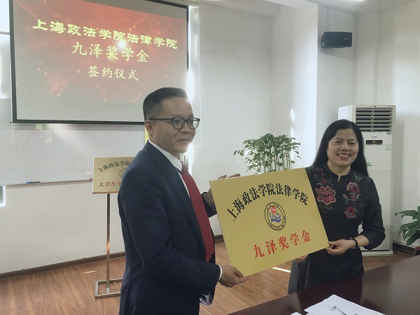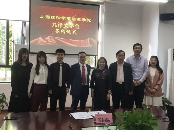5月21日下午,法律学院九泽奖学金签约仪式在法学楼B2-110会议室顺利举行。上海市九泽律师事务所主任郑斐戈律师、法律学院院长侯怀霞教授、党总支书记文立月出席,签约仪式由学院党总支副书记徐海琨主持。