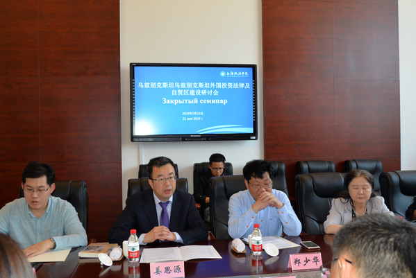 5月21日下午,乌兹别克斯坦外国投资法律及自贸区建设研讨会在中国-上合基地顺利召开,乌兹别克斯坦司法部副部长、塔什干国立法律大学校长堪亚佐夫,塔什干国立法律大学刑事诉讼及犯罪侦查教研室主任图赫塔舍娃·乌米达等4名乌方人员出席会议。上海财经大学法学院教授、最高人民法院自贸区司法研究基地主任郑少华,华东政法大学教授、博导、中国财税法学会副会长、上海市财税法学会会长陈少英等10名中方人员出席会议,中国-上合组织法律服务委员会交流合作基地秘书长、上合组织法律服务委员会中方筹备办执行秘书长姜思源与365英国上市公司经济法学院副教授孙放主持讲座。