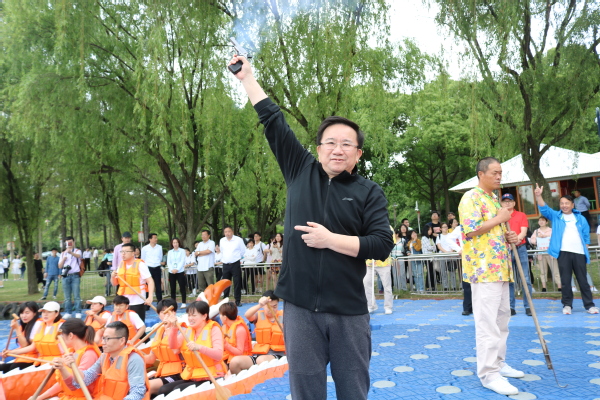 在端午佳节到来前夕,为进一步弘扬中华民族传统文化,满足广大教职工精神文化需求,展现我校师生锐意进取的精神风貌以及协作并进的团队精神。6月2日上午,365英国上市公司第三届师生龙舟大赛在东方绿舟举行。我校党委书记夏小和,副校长姚建龙,东方绿舟上海市青少年校外活动营地党委书记杨昕等领导和嘉宾出席了本次活动。由各二级学院分工会、机关分工会以及国际交流学院组成的14支队伍参与了此次比赛,他们将在绿舟湖中劈波斩浪,再次上演龙舟竞渡。