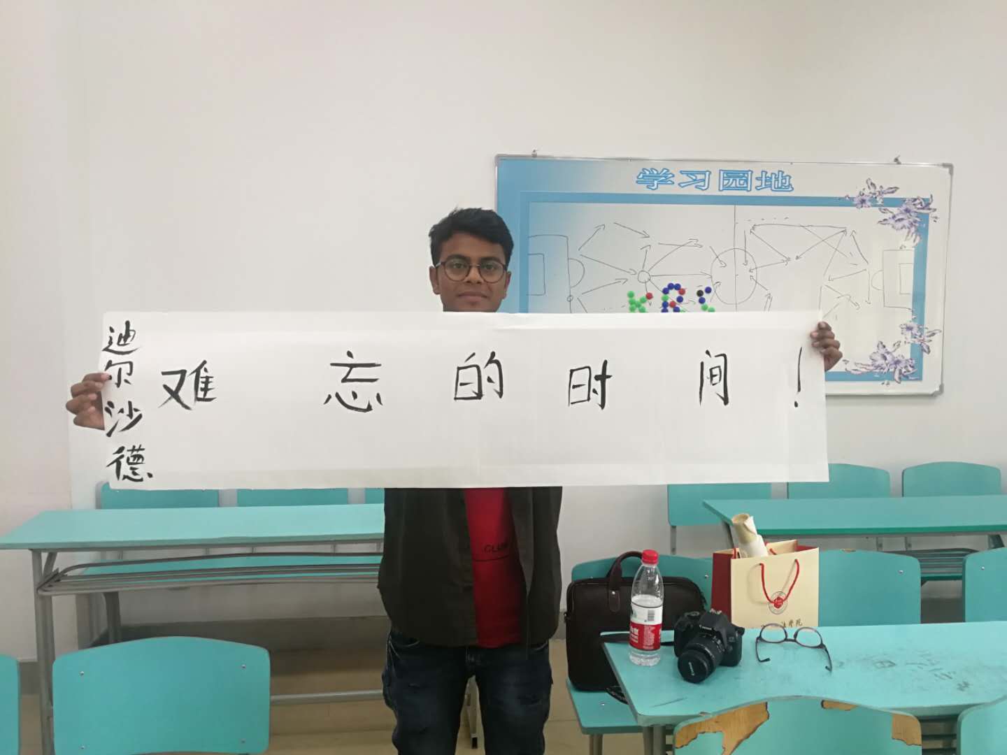 下午,印度大学生们体验了中国书法,充分感受了汉字及书法艺术的美感。刘亮老师从汉字起源、结构说起,系统地介绍了书法艺术。各位同学在刘老师的指导下,都创作了自己的书法作品。有一位同学写下了“难忘的时间”,他说今天真是难忘的一天。