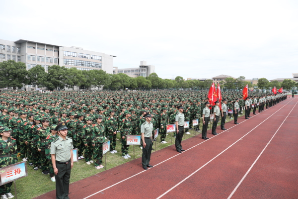 6月17日,2019年学生军训入营式隆重举行。党委副书记、副校长刘刚,副校长关保英,军训团成员、带训辅导员以及全体大一学生参加入营仪式。仪式由军训团副政委徐丽红主持。伴随雄壮的国歌,五星红旗迎风飘扬,2019年学生军训序幕正式拉开。