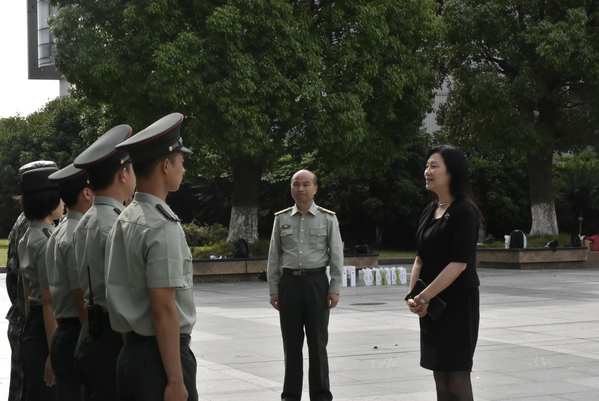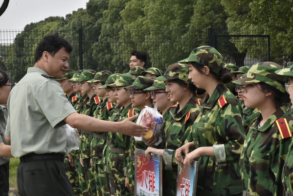 6月24日,校长刘晓红,党委副书记、副校长、军训团团长兼政委刘刚,副校长关保英,副校长姚建龙在军训团成员陪同下慰问全体军训师生。