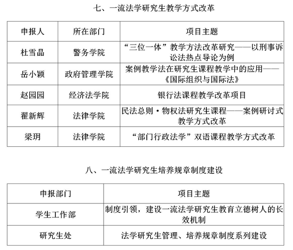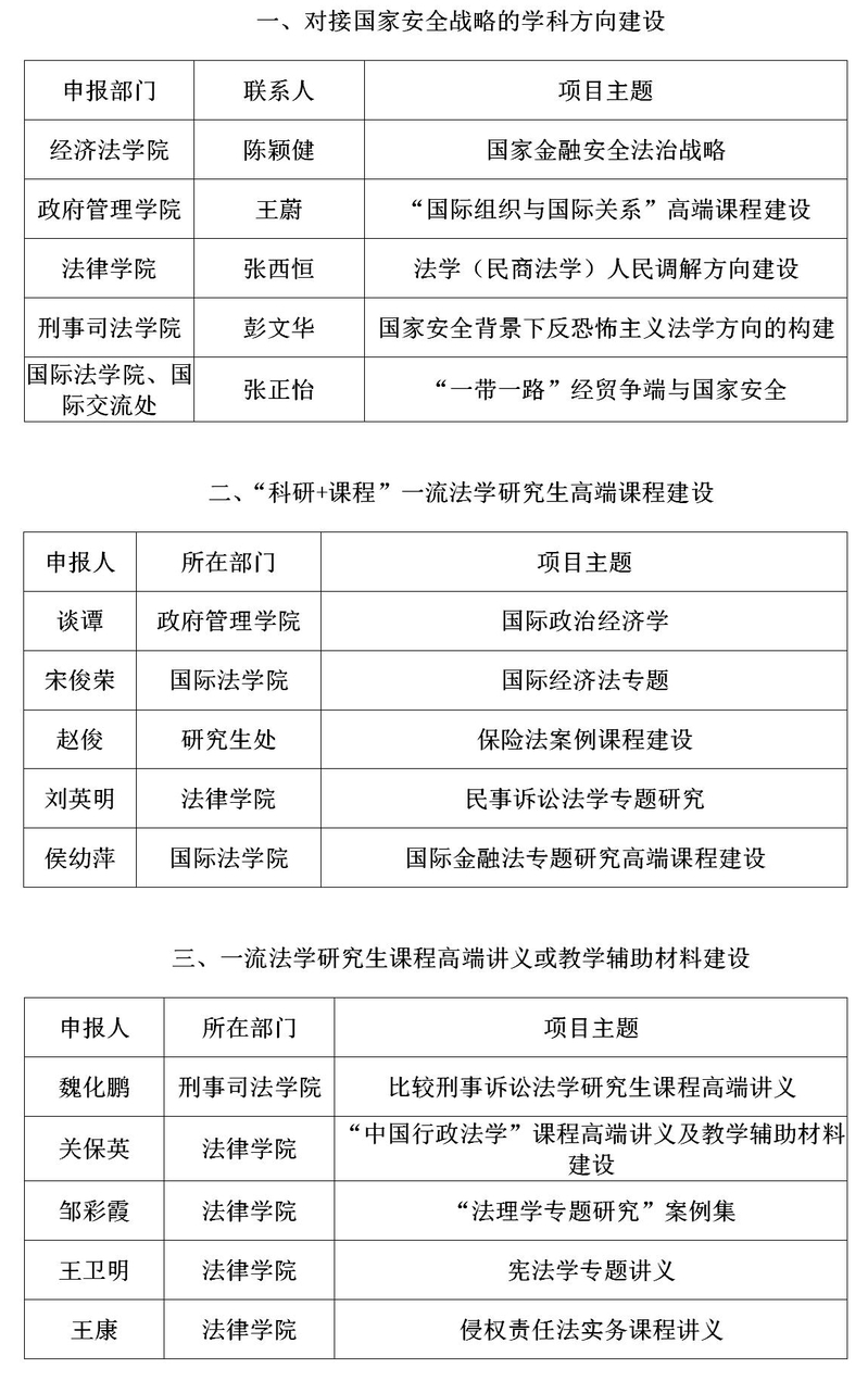 根据学校2019年度“一流研究生教育引领计划”实施总体安排,组织了开展2019年度“一流研究生教育引领计划”(研究生教育教学与培养建设)项目申报,经各有关学院、部门与相关教师申报、推荐,专家评审,学校一流研究生教育建设工作小组讨论,建议对下列项目予以拟立项。