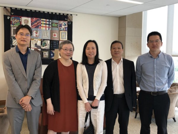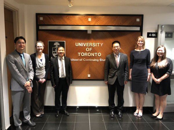 随后,代表团一行访问了加拿大多伦多大学。多伦多大学英语教育中心学术主管林茜·布鲁克,项目管理人Mio Otsuka,特殊项目协调人Barb Petersen等向代表团就多伦多大学的英语培训项目的相关情况进行了介绍,对代表团提出强化两校之间的英语培训合作、向我校提供定制的英语培训项目表达了浓厚的兴趣,双方就相关事宜达成了初步的合作意向。