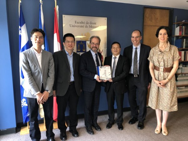 在加期间,代表团一行首先访问了加拿大著名高校蒙特利尔大学。该校法学院院长Jean-francois Gaudrault-Desbiens, 负责研究生教育的副院长Michel Morin以及负责外部事务的Ysolde Gendreau副院长与代表团就学生短期访学、教师互访等进行了深入探讨并达成了初步合作意向。蒙特利尔法学院在比较法研究方向独树一帜,双方同意在比较法研究领域加强合作。