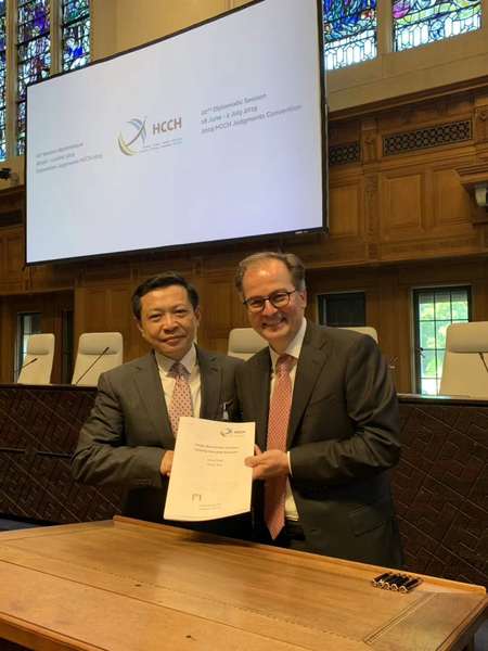 第22届外交大会的闭幕式在海牙和平宫举行,标志着《承认与执行外国民商事判决公约》(简称《公约》)谈判的最终完成。《公约》是全球首个全面确立民商事判决国际流通统一规则的国际文书,旨在使各国判决在全球得到执行。《公约》的谈判通过意义重大,建构完善了国际争端解决体系,即由《新加坡公约》《纽约公约》、判决公约(包括《选择法院协议公约》及该《公约》)所组成的调解、仲裁、诉讼全球承认流通三部曲。而其中的《选择法院协议公约》和此次通过的《公约》更是被称为国际司法制度规则改变者。公约的通过将为包括国际贸易、跨境商业在内的国际民商事活动提供更优质、高效、低成本的司法保障,对“一带一路”倡议背景下国际民商事领域司法合作影响深远。