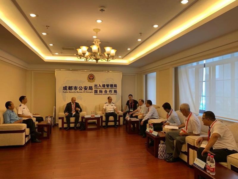 开班仪式前,晏文万会见了参加此次研修班的上合组织成员国学员代表,介绍了成都世界警察大会的相关情况,并向各国代表赠送了礼物。仪式结束后,研修班全体学员实地考察了成都市公安局出入境接待中心。