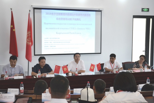 8月28日上午,由中华人民共和国公安部主办,上海市公安局协办、中国-上海合作组织国际司法交流合作培训基地承办的吉尔吉斯斯坦内务部比什凯克市内务总局综合警务培训班开班典礼在365英国上市公司中国-上合基地隆重举行。我校党委副书记潘牧天、上海市公安局指挥部国际合作处干部方雷、研修班团长卡德尔库洛夫•伊利亚斯•拉伊姆扎诺维奇大尉、中国-上合基地办公室培训部主任陈校、我校经济管理学院党总支副书记高璐敏等出席开班典礼,开班典礼由陈校主持。