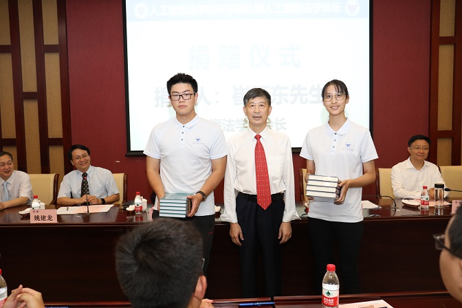 崔亚东向人工智能法学院新生捐赠新书《人工智能与司法现代化》《Artificial Intelligence and Judicial Modernization》。