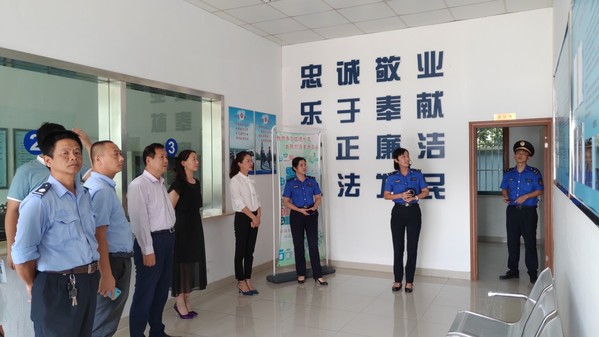 与会人员参观了佘山镇城管中队的办公场所,包括城管业务接待服务大厅、信访办公室、城管工作人员的办公区域、值班区域等,了解了城管队员的日常生活和工作状态。