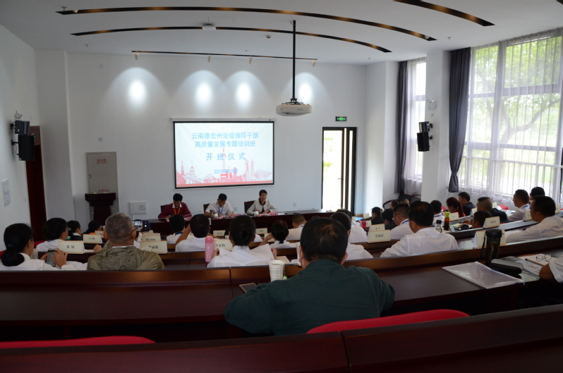 10月9日上午,2019年云南省德宏州处级领导干部高质量发展专题培训班在我校开班。德宏州州委巡察组组长牛晓东,我校继续教育学院院长马小娜出席开班仪式。仪式由培训部王飞主持。