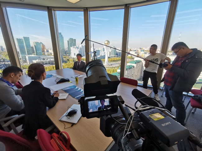 10月1日,由中国-上合基地和上海纪录片学院组成的摄制组在祖国70岁生日之际出发,正式启动上海合作组织国家系列纪录片第三季(哈萨克斯坦)、第四季(塔吉克斯坦)的拍摄工作。受哈萨克斯坦阿里•法拉比大学、塔吉克斯坦国立民族大学的邀请,摄制组在16天的时间里,长途跋涉、团结拼搏,从努尔苏丹到阿拉木图,再到杜尚别,辗转万余公里,高强度工作。采访了当地社会、经济、文化发展状况,记录了哈萨克斯坦、塔吉克斯坦两个国家悠久的历史文化与民族风情,了解了中国企业在哈国的法律服务需求。